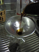 | 内容: | 今日はそばつゆを自作します 手打ちであろうと、市販の乾麺であろうと、自作のツユで食べたら、まったく味が変わります そばつゆは、『かえし』と『だし汁』を合わせて作ります 今日は、まず『かえし』を作りました 醤油を暖めて作る『本かえし』です この『かえし』をしばらく冷凍庫で眠らせ、今度作る『ダシ汁』と合わせますと実に美味しいそばつゆになるはずです…が |